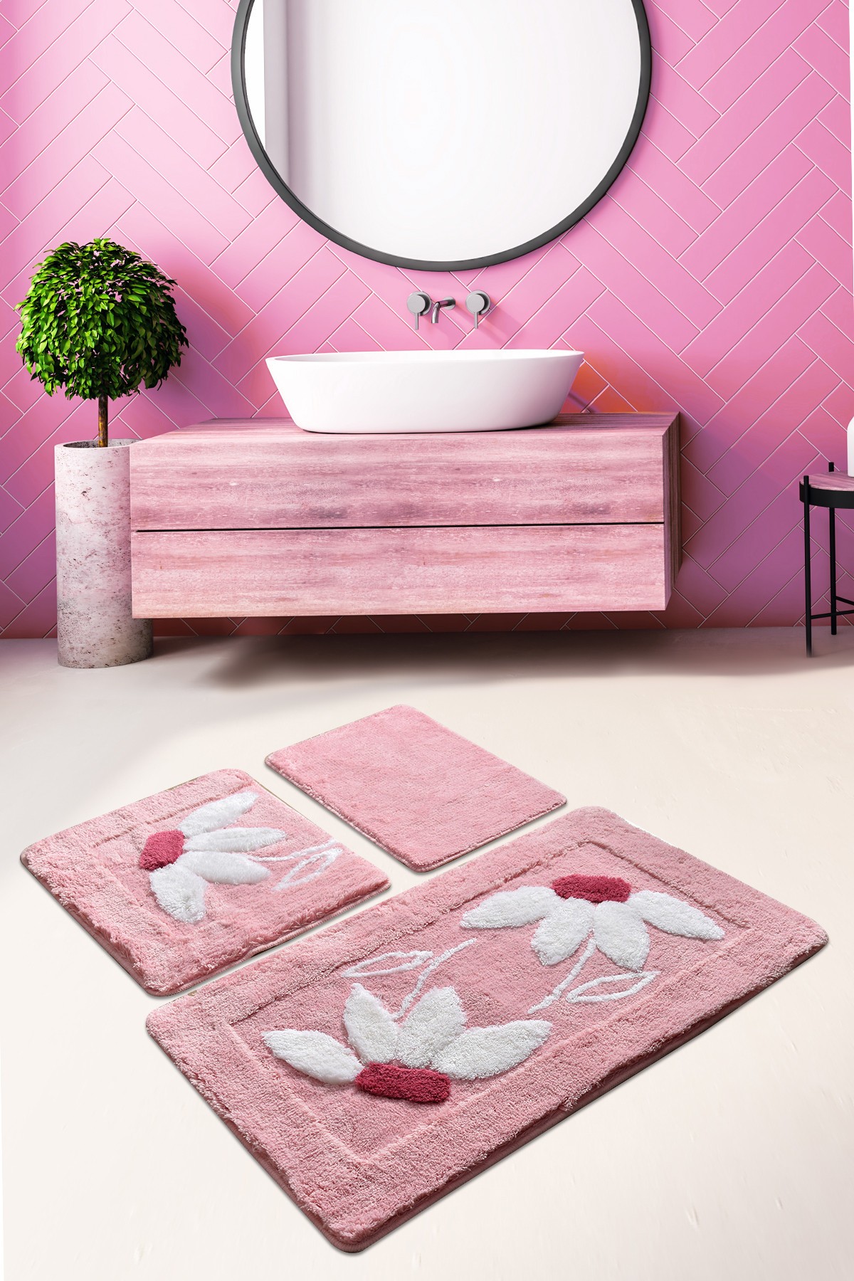 Das Badematten-Set bestehend aus drei Teilen bietet Komfort und Stil für Ihr Badezimmer. Die Badematten bestehen aus 100% ACRYL und verfügen über eine Florhöhe von 18-30 mm. Die rutschfeste Unterseite ist antibakteriell ausgestattet und sorgt für sicheren Halt. Dank der Waschmaschinenfestigkeit bei 30 °C ist die Pflege der Matten einfach und bequem.