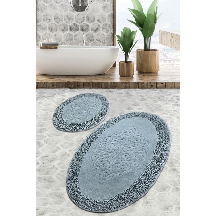 Badematenset (2 Stück) | 100 % BAUMWOLLE | Antibakteriell | Rutschfeste Unterseite
