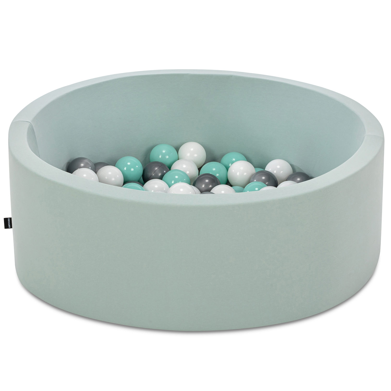 Das Bällebad hat die Maße XYZ und besteht aus robustem Kunststoffmaterial.