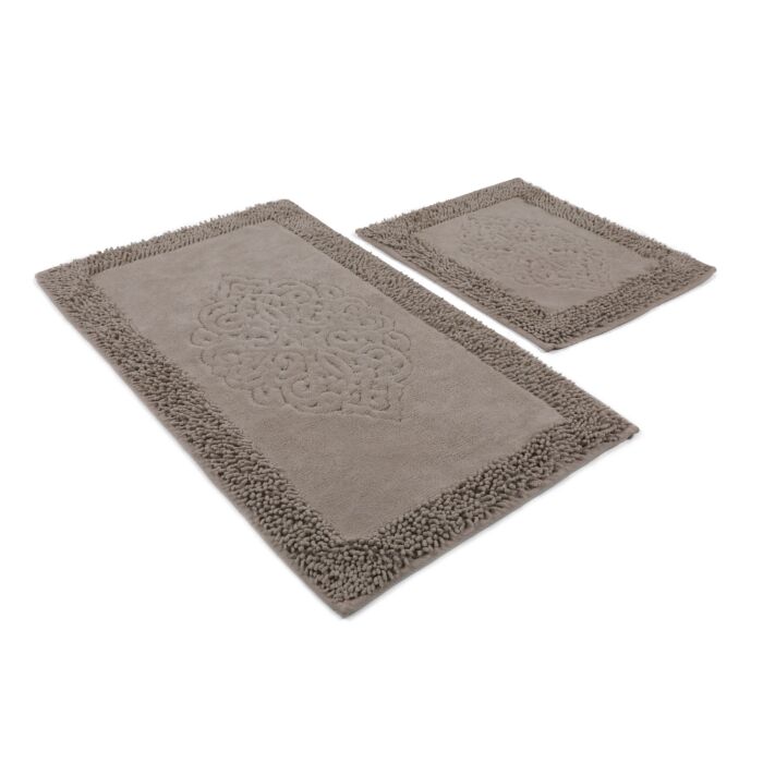 Das Badematten-Set besteht aus 100% Baumwolle und hat eine Dichte von 1600 gr/m. Die Badematte ist 50 x 60 cm groß, während die zweite Badematte 60 x 100 cm misst.