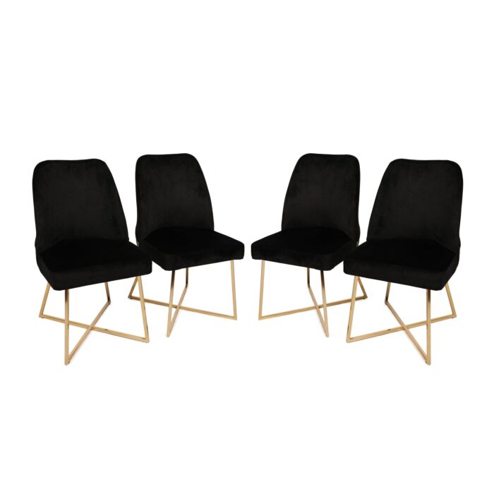 Dieses Stuhlset besteht aus 4 Stühlen, die mit einem robusten Rahmen aus 100 % Metall gefertigt sind. Die Sitzfläche kombiniert weichen Samtstoff mit strapazierfähigem Kunstleder für Komfort und Langlebigkeit. Mit Metallbeinen für Stabilität.