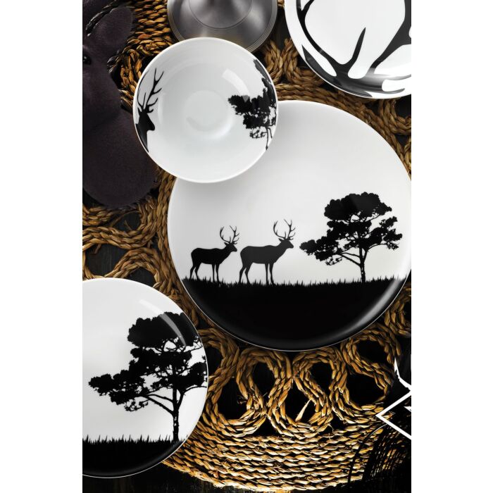 Asir Tafelservice (24 Teile). 100 % PORZELLAN Serviceteller: 27 x 27 x 2 cm (6 Stück) Teller: 21 x 21 x 4 cm (6 Stück) Schüssel: 15 x 15 x 5 cm (6 Stück) Dessertteller: 21 x 21 x 2 cm ( 6 Stück)