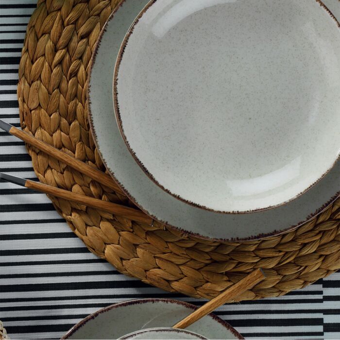 • Inklusive: 6 Serviceteller (25 x 25 x 3 cm), 6 Teller (21 x 21 x 4 cm) und 6 Dessertteller (21 x 21 x 2,5 cm)