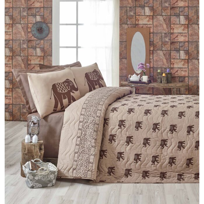Asir Doppel-Stepp-Tagesdecke Set 65 % BAUMWOLLE / 35 % POLYESTER (Bezug) / 100 % FASER (Füllung) Steppbezug (gepolstert): 200 x 220 cm Kissenbezug: 50 x 70 cm (2 Stück)