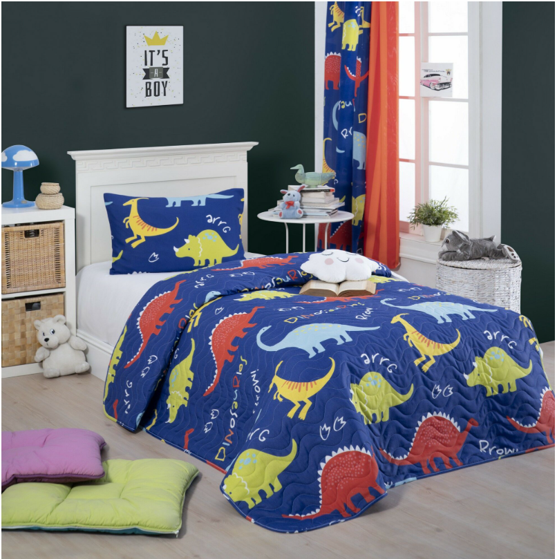Asir | Eenpersoons gewatteerde spreienset | Blauw - 160 x 220 cm