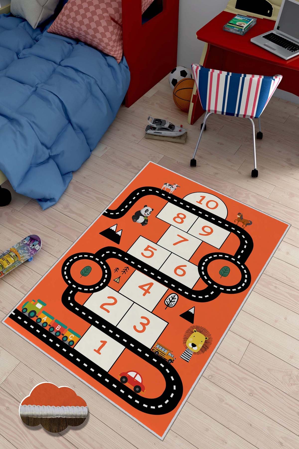 Der Teppich misst 100 x 150 cm und besteht aus strapazierfähigem Material, das für eine lange Lebensdauer sorgt.