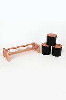 Diese Aufbewahrungsboxen bestehen zu 100% aus Keramik, mit Abmessungen von jeweils 10 x 10 x 10 cm. Ein Holzständer ist zur einfachen Präsentation enthalten. Die Farbe ist Mattschwarz.