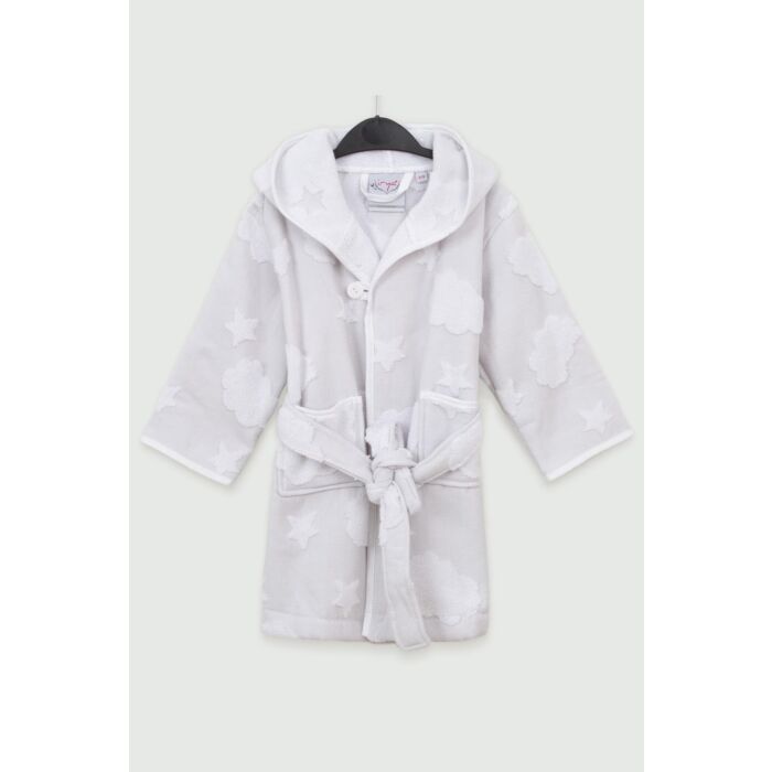 Asir Cloud - Grauer Kinderbademantel | 100 % BAUMWOLLE | Größe: 2/3 Jahre
