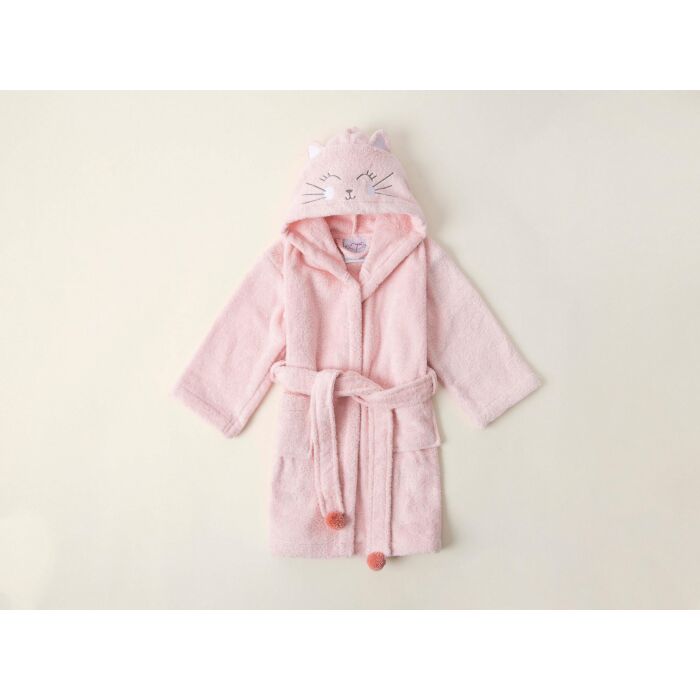 Asir Kitty - Rosa Kinderbademantel | 100 % Baumwolle | Größe: 2/3 Jahre