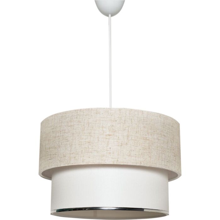 Mit einem Durchmesser von 30 cm und einer Höhe von 65 cm ist die Kroonluchter nicht nur funktional, sondern auch ein wahrer Blickfang. Das verwendete Material, eine Kombination aus Metall und einem Stoffschirm, sorgt für eine harmonische Balance zwischen Eleganz und Langlebigkeit. Diese Mischung aus Crème- und Weißtönen ergänzt mühelos verschiedene Innenarchitekturstile und zieht die Blicke auf sich.