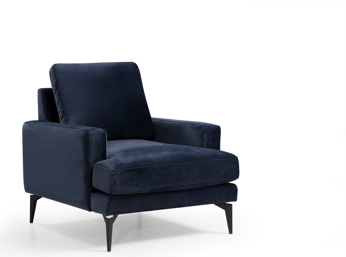 Der Rahmen aus Buchenholz und Spanplatten sorgt für verbesserte Langlebigkeit. Der Stoff aus 100% Polyester verleiht ein weiches und luxuriöses Gefühl. Der Sessel misst 80 cm L x 90 cm B x 88 cm H, mit einer Schaumstoffhöhe von 16 cm für maximalen Komfort. Die matt-schwarzen Metallbeine bieten Stabilität und Stil. Die Marineblaue Farbe sorgt für einen zeitlosen und eleganten Look.
