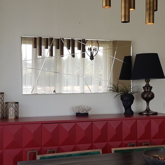 Dank seiner vielseitigen Montagemöglichkeiten kann dieser Spiegel sowohl horizontal als auch vertikal an der Wand angebracht werden. Egal ob im Flur, Schlafzimmer oder Wohnzimmer, dieser Spiegel ergänzt Ihr Interieur auf elegante Weise.