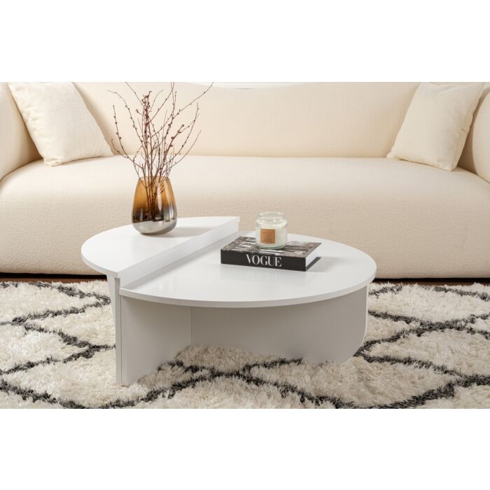 Der Couchtisch ist aus 100% gemelamineertem Spanplatte gefertigt und bietet eine robuste und langlebige Lösung für Ihre Wohnräume. Die Abmessungen von 90 cm Breite, 60 cm Tiefe und 30 cm Höhe machen ihn zu einer perfekten Option für verschiedene Stilrichtungen. Die matte, weiße Oberfläche verleiht dem Tisch eine frische und moderne Ausstrahlung und lässt sich mühelos in bestehende Möbelkonzepte integrieren.