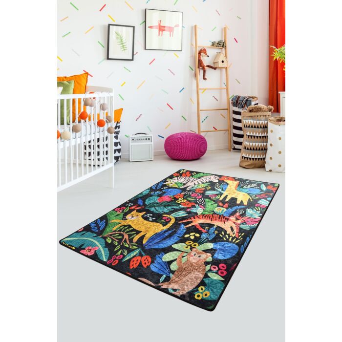 Das Zoo-Design des Teppichs ist nicht nur ästhetisch ansprechend, sondern auch funktional und fügt sich nahtlos in verschiedene Wohnräume ein.