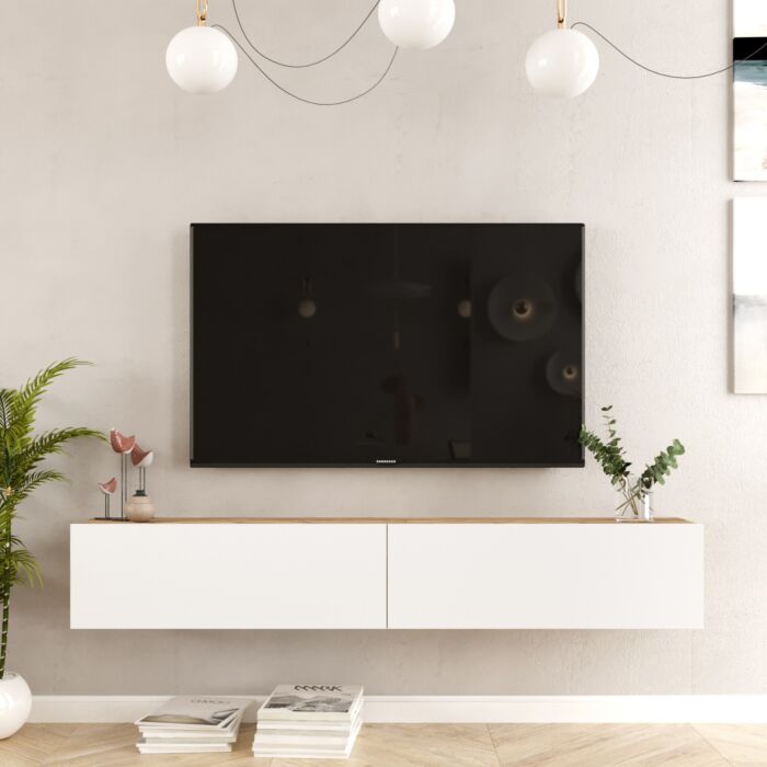 Die melaminbeschichtete Spanplatte sorgt für Langlebigkeit und ein modernes Aussehen. Mit einer Dicke von 18 mm und den Abmessungen 180 cm x 29,6 cm x 31,6 cm bietet dieser TV-Tisch ausreichend Platz für Ihr Entertainment-System.