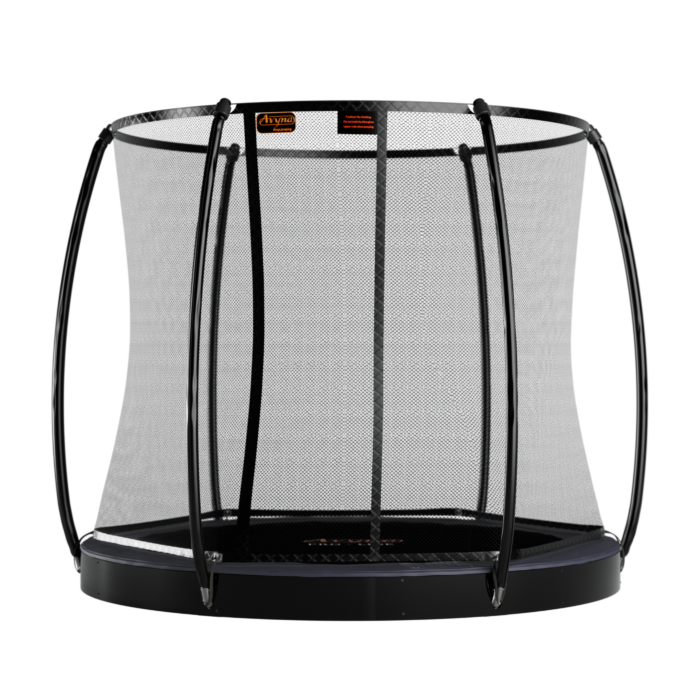 Das FlatLevel-Trampolin von Avyna bietet Sicherheit, Spaß und Komfort. Der graue Trampolinrand und das Royal Class-Sicherheitsnetz sorgen für ein angenehmes und sicheres Sprungerlebnis.