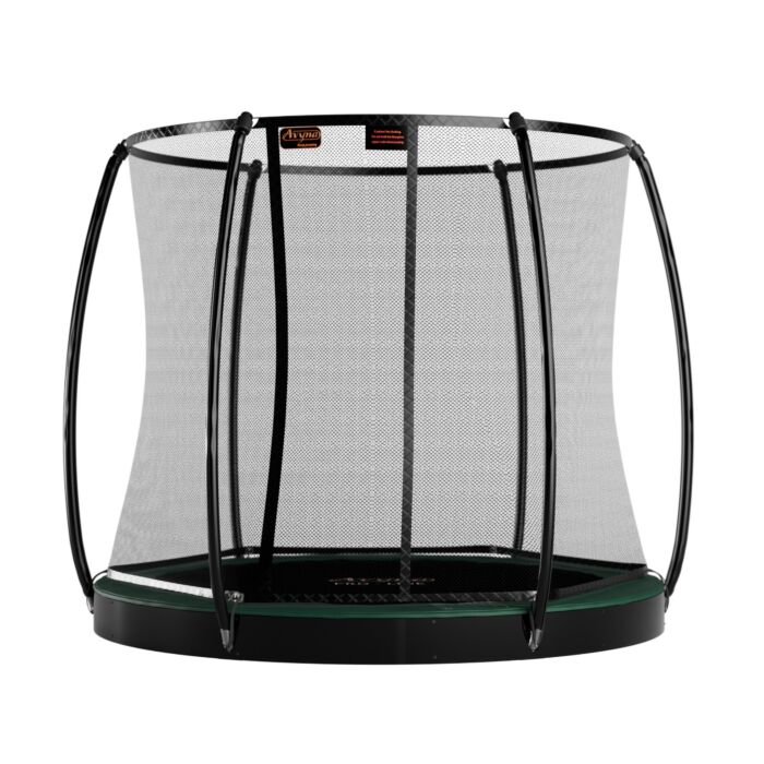 Das Avyna Pro-Line FlatLevel Trampolin mit einem Durchmesser von 245 cm in Grün ist die perfekte Lösung für kleine Kinder oder begrenzten Platzbedarf. Das Trampolin ist vollständig ebenerdig, was bedeutet, dass es keine Stufen hat und dadurch maximale Sicherheit bietet. Der Rahmen des Trampolins ist in den Boden integriert, was nicht nur die Sicherheit erhöht, sondern auch für ein harmonisches Erscheinungsbild im Garten sorgt.