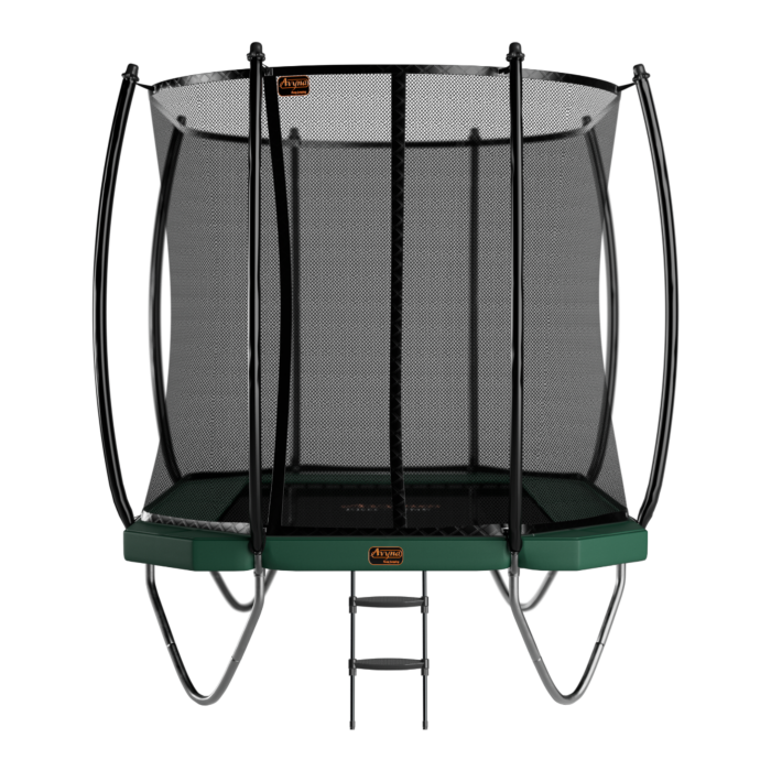 Das Avyna Pro-Line Trampolin bietet eine umfassende Sicherheitsausstattung, einschließlich eines Royal Class-Sicherheitsnetzes, doppelt verzinkter Federn, flexiblem Sprungtuch und einem robusten grünen Trampolinrand. Jedes Detail wurde mit Liebe und Sorgfalt gestaltet, um langlebigen und sicheren Springspaß zu gewährleisten.