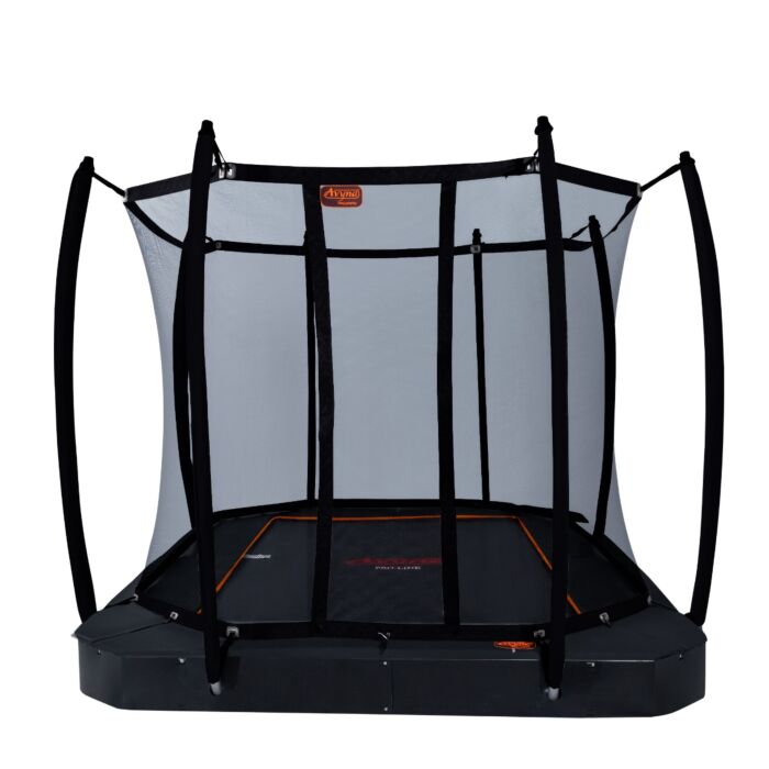 Das Avyna Pro-Line FlatLevel Trampolin vereint Funktionalität und Sicherheit in einem Gartenprodukt. Mit Maßen von 305 x 225 cm ist dieses Modell beliebt und bietet ausreichend Sprungfläche. Das spezielle FlatLevel-Design bedeutet, dass das Trampolin vollständig im Boden vergraben ist, für ein nahtloses Erscheinungsbild und einfacheren Zugang ohne Stufen.