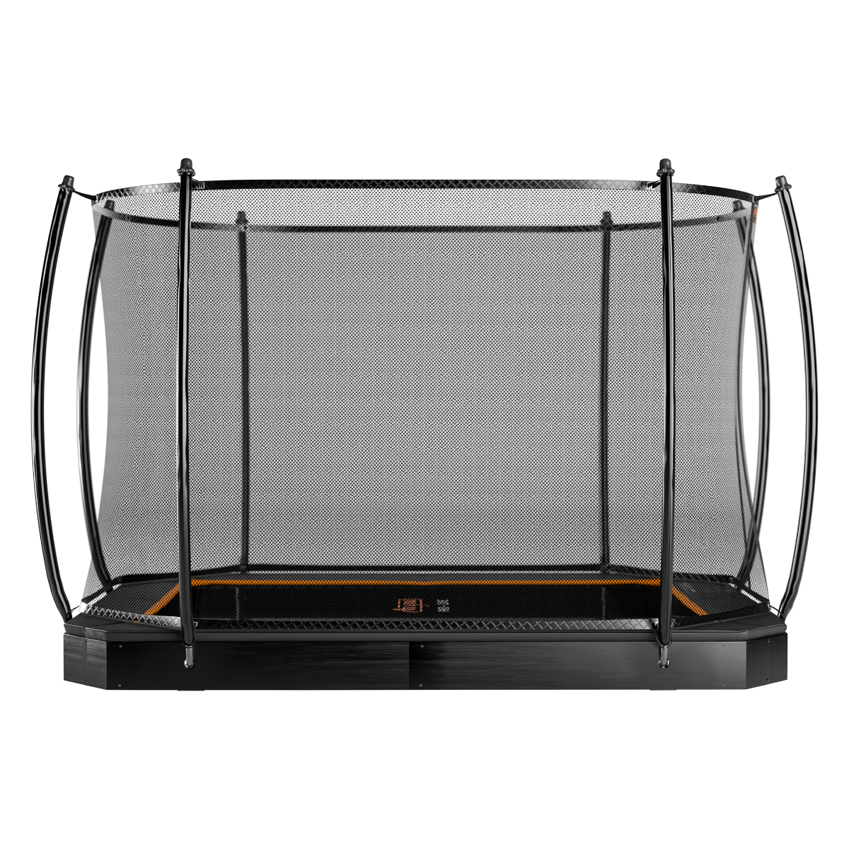 Ein Sicherheitsnetz um das Trampolin ist optional, wenn ein weicher Untergrund von mindestens 1 Meter um das Gerät vorhanden ist. Diese InGround FlatLevel-Trampoline erfreuen sich steigender Beliebtheit aufgrund ihres eleganten Erscheinungsbilds und der niedrigen Ein- und Ausstieghöhe für maximale Sicherheit.
