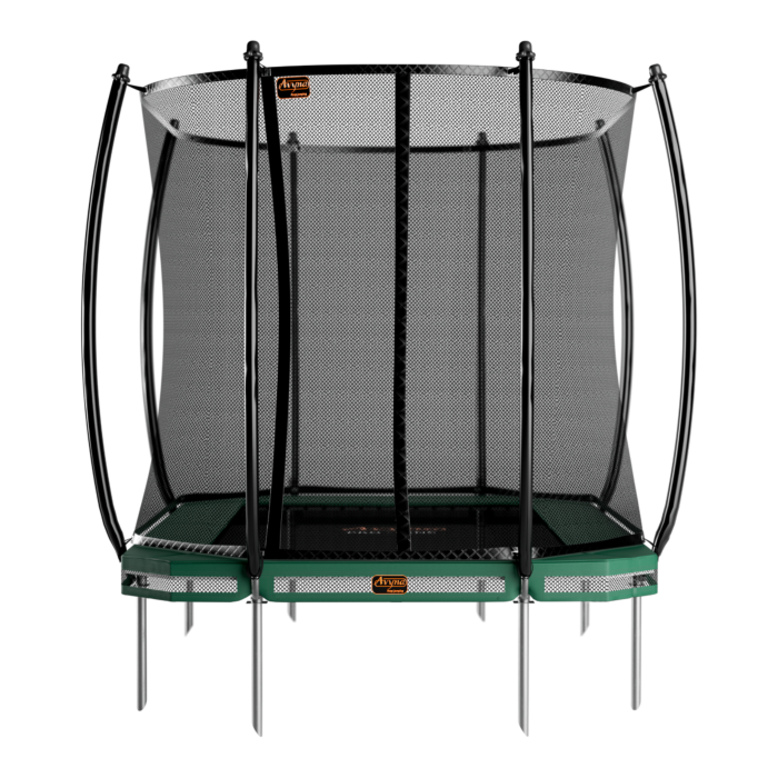 Das Avyna Pro-Line InGround-Trampolin mit dem Royal Class Sicherheitsnetz im Set 238 bietet Spaß und Sicherheit in Ihrem Garten. Mit einer Größe von 3,80 x 2,55 Metern und einer erhöhten Position von ca. 20 cm über dem Boden ist dieses Trampolin ideal für aktive Familienspaß. Das Trampolin verfügt über einen stabilen Rand, der die Federn abdeckt und damit für sicheres Springen sorgt. Das Royal Class-Sicherheitsnetz bietet zusätzliche Sicherheit beim Trampolinspringen. Der grüne Trampolinrand ist langlebig und von höchster Qualität. Das flexible Sprungtuch des Trampolins sorgt für ein angenehmes Sprungerlebnis. Die gesamte Konstruktion ist robust und hochwertig verarbeitet, um jahrelangen Freizeitspaß zu gewährleisten. Die Avyna Pro-Line Trampoline werden in Vietnam entworfen und hergestellt, wobei höchste Standards an Qualität und Sicherheit eingehalten werden. Dieses InGround-Trampolin passt elegant in Ihren Garten und sorgt für sicheres Spielen für die ganze Familie. Erfüllen Sie sich und Ihren Kindern mit dem Avyna Pro-Line 238-380x255 InGround-Trampolin den Wunsch nach Qualität, Sicherheit und langlebiger Freude. Sicherheit und Spaß stehen im Mittelpunkt dieses hochwertigen Trampolins.