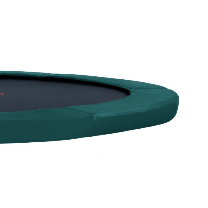 Die Universalkante bietet Schutz vor Verletzungen durch Stürze zwischen den Federn und verlängert die Lebensdauer Ihres Trampolins. Das grüne Design fügt sich harmonisch in den Garten ein.