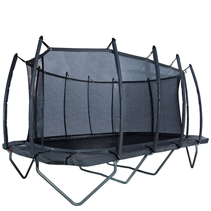 Das gebogene Design der Stangen sorgt für zusätzliche Sicherheit und Stabilität. Das Netz ist so konzipiert, dass es auch bei direktem Kontakt standhaft bleibt und somit ein sicheres Trampolinerlebnis bietet.