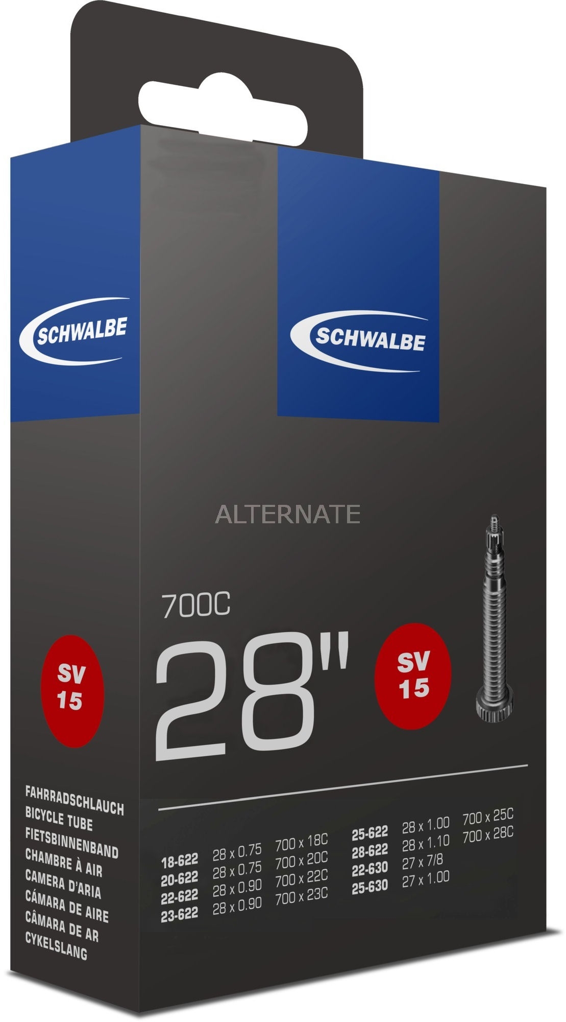 Die Schwalbe SV15 Innenreifen sind für mehrere Reifenabmessungen geeignet, darunter 22-630 (27 x 7/8), 25-630 (27 x 1.00), 23-622 (28 x 0.90 - 700 x 23C) und viele mehr. Sie bestehen aus langlebigem Gummi, das eine hohe Pannensicherheit bietet und sich für den täglichen Gebrauch eignet.