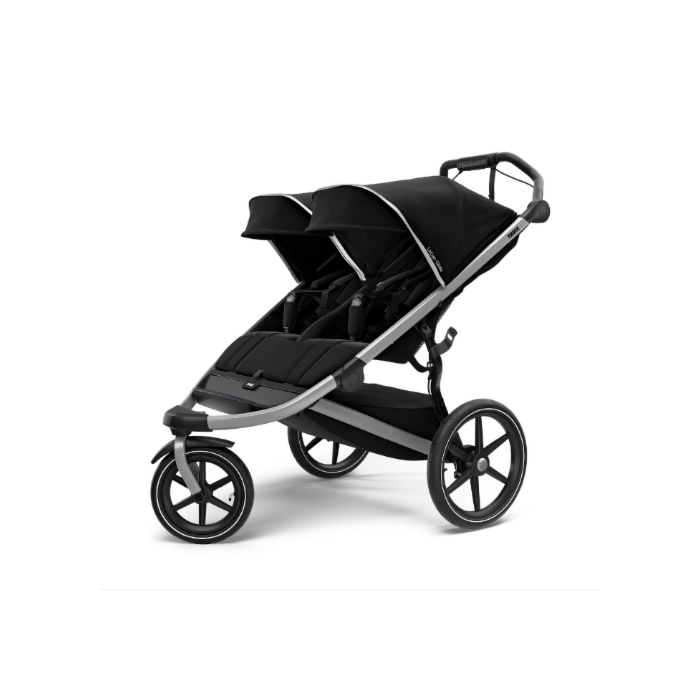 Der Thule Urban Glide 2 Double in der Farbe Jet Black ist der ideale Kinderwagen für aktive Eltern. Er bietet nicht nur hervorragende Wendigkeit auf verschiedenen Untergründen, sondern ist auch für sportliche Aktivitäten geeignet. Mit seinen großen 16-Zoll-Hinterrädern, die in Kombination mit einem beweglichen Vorderreifen für ein optimales Fahrerlebnis sorgen, ist dieser Kinderwagen perfekt zum Joggen und für Ausflüge in die Natur.