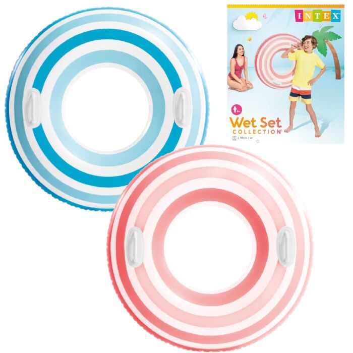 Großer Intex-Luftreifen mit fröhlichem Stern-Design. Erhältlich in 3 verschiedenen Farben: lila, pink und blau. Der Riemen hat 2 stabile Griffe und hat einen Durchmesser von 91 cm. Hergestellt aus 0,23 mm dickem Vinyl. Wird in einer vollfarbigen Box geliefert, einschließlich eines Reparaturbogens. Geeignet für Kinder ab 9 Jahren.