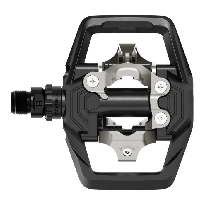 Die Shimano PD-ME700 SPD Trail Pedale wurden speziell für Mountainbiker entwickelt, die auf unbefestigten Wegen unterwegs sind. Sie bieten durch ein breiteres Kontaktfläche eine verbesserte Kraftübertragung und Stabilität, sodass der Fahrer sich besser auf die schwierige Strecke konzentrieren kann.