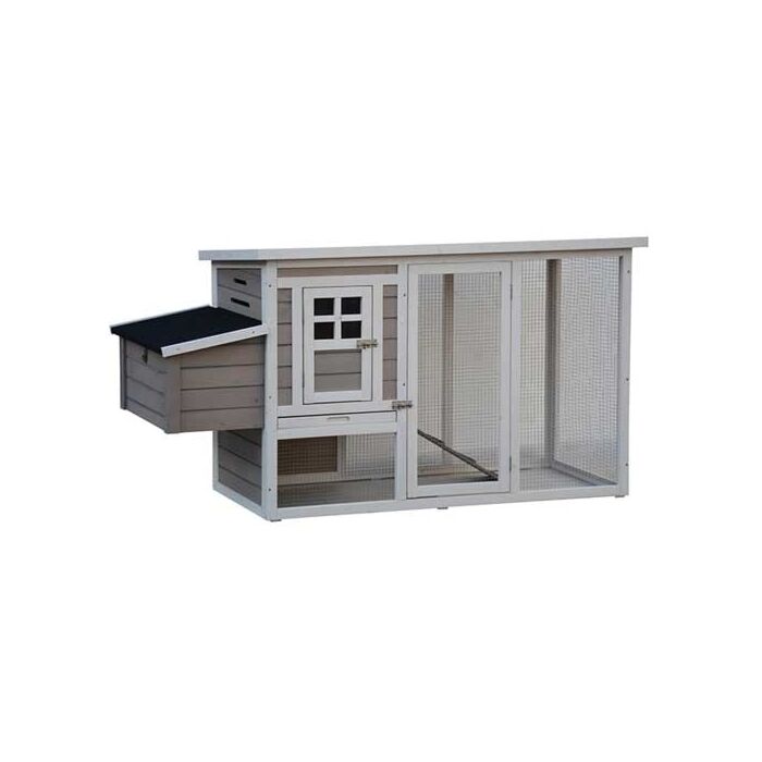 Der Hühnerstall Max in Grau ist das ideale Zuhause für Zwerghühner und bietet einen sicheren und komfortablen Lebensraum. Mit den Abmessungen von 168 x 65 x 88 cm ist dieser Stall praktisch gestaltet und fügt sich harmonisch in Ihren Garten ein. Das klassische Modell bietet sowohl einen geschützten Nachtstall als auch einen großzügigen überdachten Auslauf, der den Hühnern ausreichend Platz zum Bewegen und Spielen bietet.