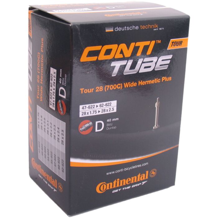 Die Innenreifen hat ein ETRTO Maß von 47-622 bis 62-622 und ist geeignet für 28" Räder mit einer Breite von 1,75 bis 2,5 Zoll. Der integrierte Dunlop/Blitz/Hollands Ventil hat eine Länge von 40 mm. Mit einem Gewicht von nur 320 Gramm ist diese Reifen eine ausgezeichnete Wahl für leichte Fahrräder.