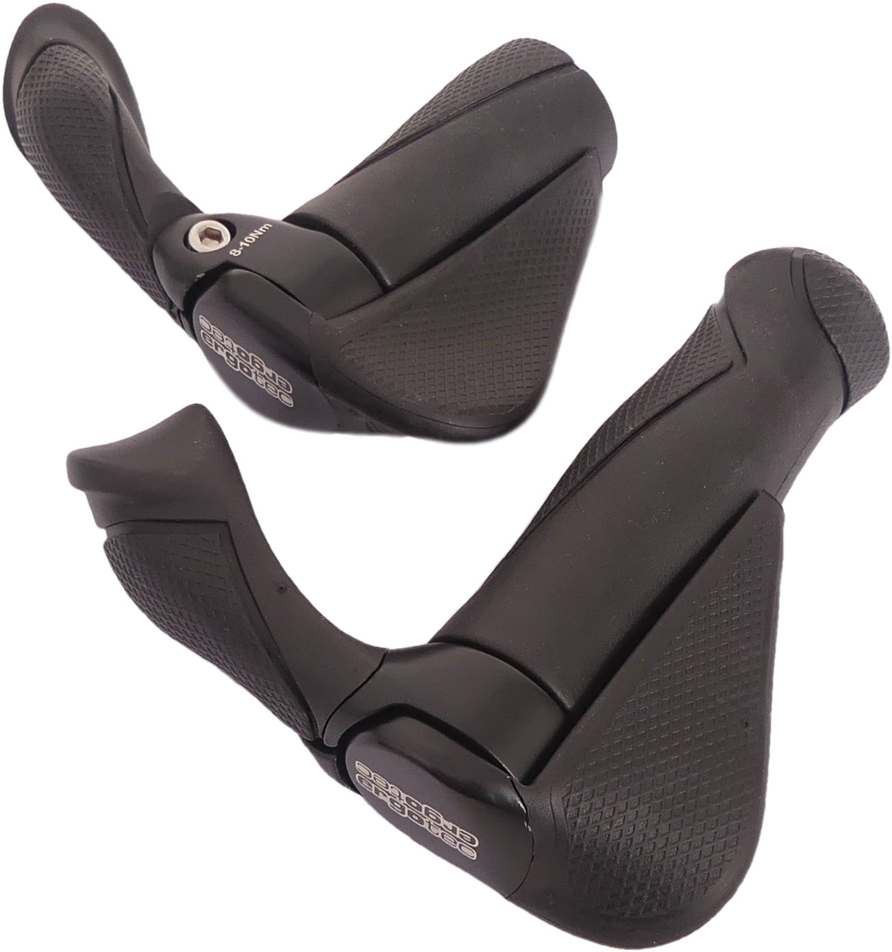 Das linke Handgriff hat eine Länge von 130 mm, während das rechte Handgriff 87 mm misst. Beide Griffe bestehen aus einer hochwertigen Kombination aus Kraton und Aluminium, was für Langlebigkeit und Robustheit sorgt. Die Garmierung des Materials hat eine Dicke von 34 mm, die einen sicheren Halt vermittelt. Die Standard-Greifdurchmesser beträgt 22 mm, was eine universelle Passform gewährleistet.