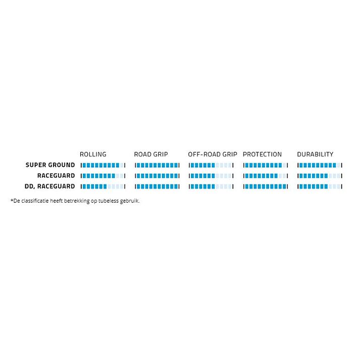 Met de RaceGuard uitvoering biedt deze band een optimale lekbescherming dankzij de dubbele weefselstructuur onder het loopvlak. Dit maakt de band niet alleen snel, maar ook licht van gewicht. De 67 EPI karkas zorgt voor een uitstekende stabiliteit en duurzaamheid, wat bijdraagt aan de algehele rijervaring.