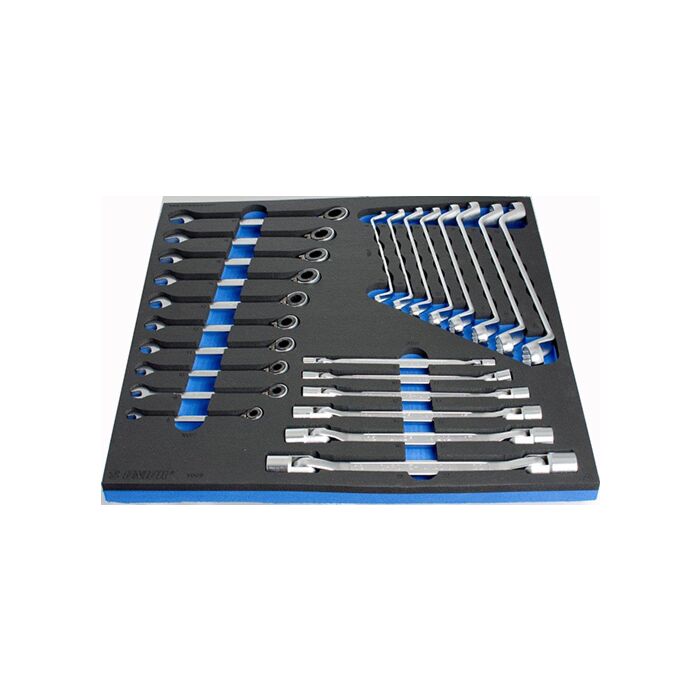 Die Schlüssel sind aus hochwertigem Material gefertigt, das für Langlebigkeit und Robustheit sorgt. Sie bieten eine ausgezeichnete Festigkeit und Widerstandsfähigkeit gegenüber Abnutzung. Die kompakten Abmessungen des Inlays ermöglichen eine einfache Aufbewahrung und einen schnellen Zugriff auf die Werkzeuge.