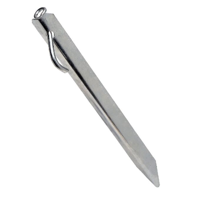 Der Umefa Hürdenhering Strong wurde speziell entwickelt, um Ihr Sturmgurt-Set sicher zu befestigen. Er verfügt über eine Befestigungsöse und einen Haken, die für zusätzliche Stabilität sorgen. Dieser Hering hat eine Länge von etwa 38 cm und einen Durchmesser von 2 mm.