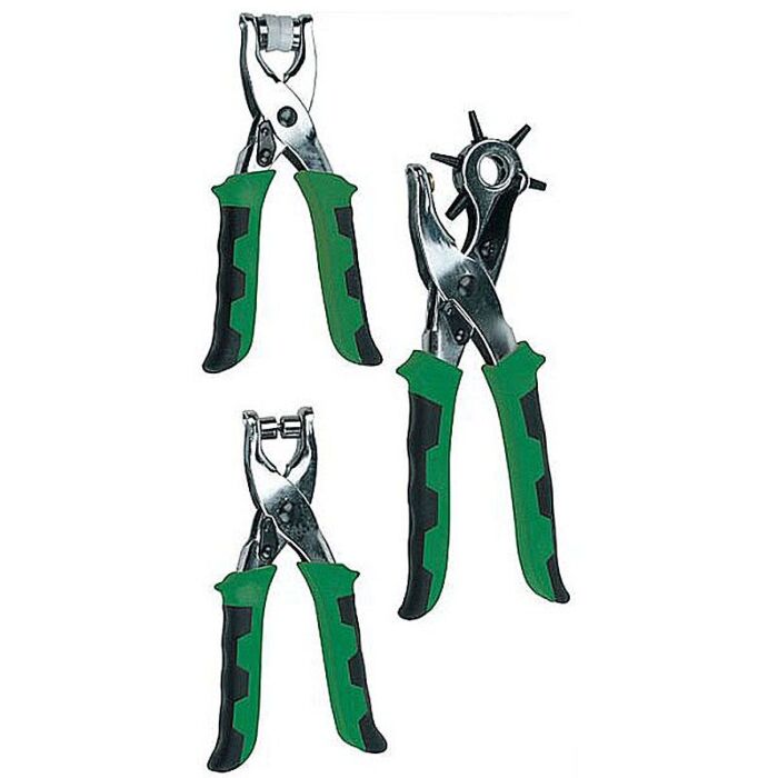 Die Revolverzange hat eine Länge von 210 mm, während die Druckknopfzange und die Augenzange beide 150 mm lang sind. Alle Zangen sind mit ergonomischen 2-Komponenten-Griffen ausgestattet, die für einen komfortablen und sicheren Halt sorgen, wodurch die Benutzerfreundlichkeit erheblich verbessert wird.