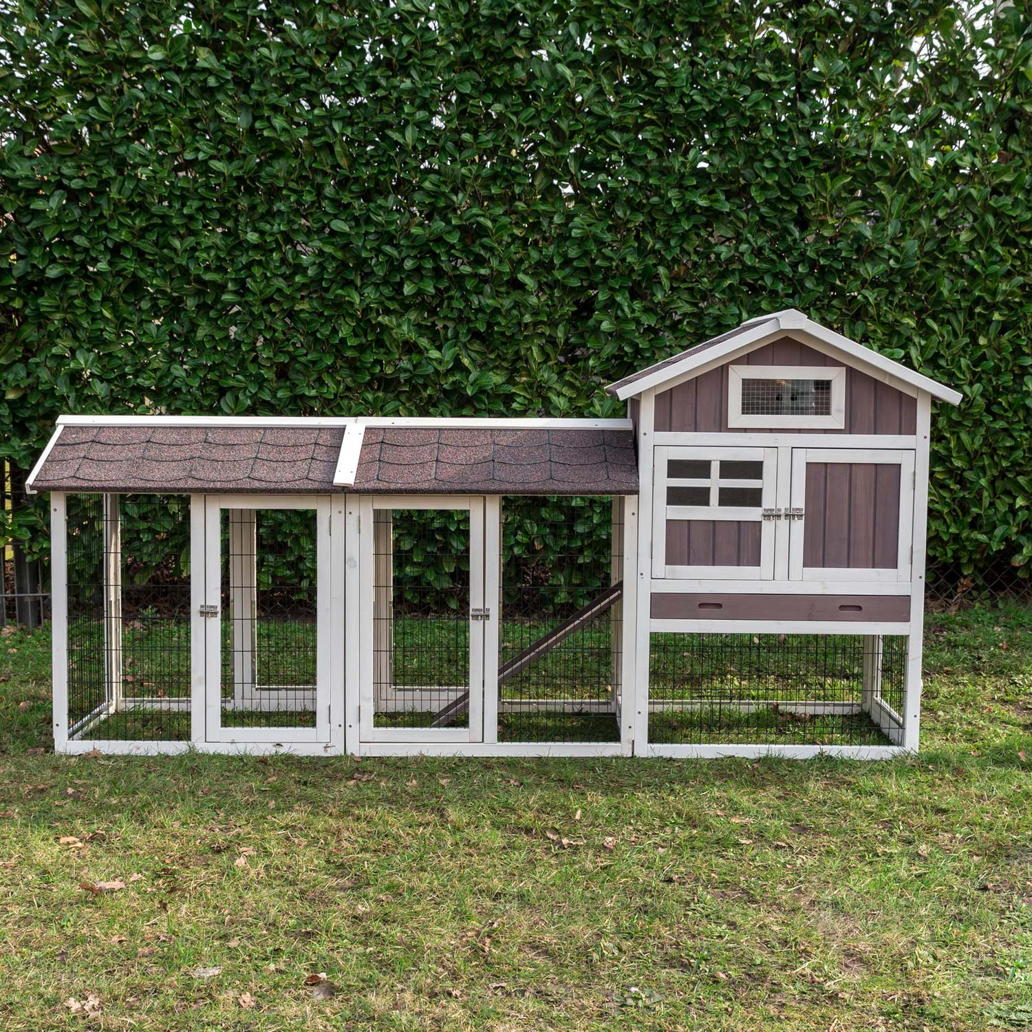 Der Kaninchenstall eignet sich bestens für die Haltung mehrerer Kaninchen. Er kann sowohl im Innen- als auch im Außenbereich genutzt werden und ist einfach zu reinigen. Der großzügige Auslauf bietet Ihren Tieren genug Platz, um sich zu bewegen und die Umgebung zu erkunden.