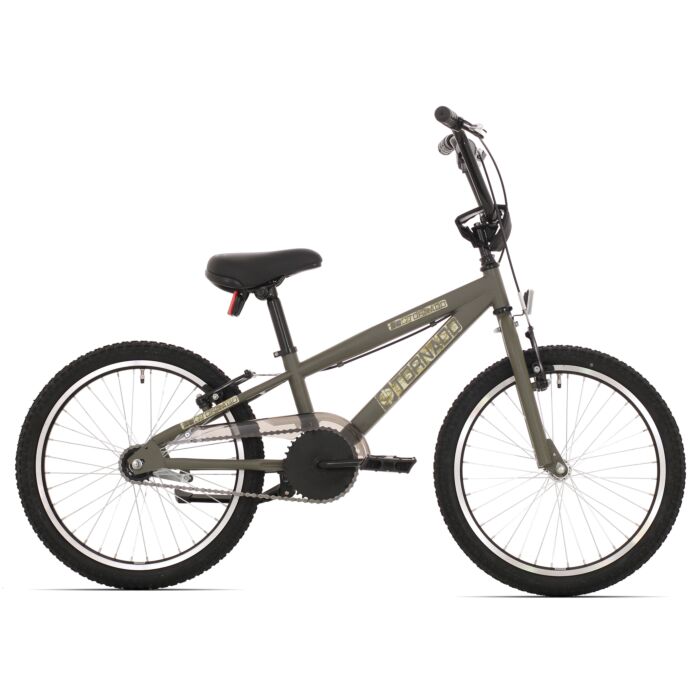 Der Royal Bugatti BMX Tornado 20'' in Camouflage ist das ideale Fahrrad für Freestyle-Enthusiasten und Stadtfahrer, die auf der Suche nach hochwertiger Bauqualität und einem ansprechenden Design sind. Mit seinem robusten Stahlrahmen bietet der Tornado überragende Stabilität, egal ob auf der Straße oder im Skatepark.