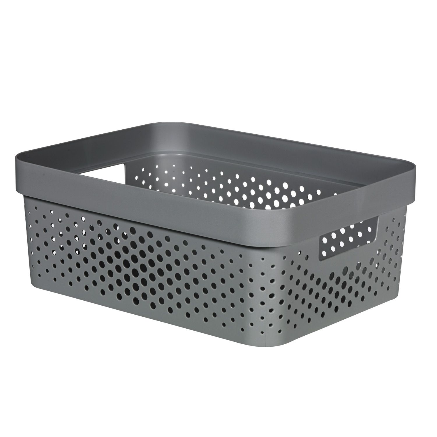 Der Curver Infinity Dots Aufbewahrungskorb mit einem Fassungsvermögen von 11 Litern in Anthrazit ist die perfekte Lösung, um Ihr Zuhause organisiert zu halten. Mit einem eleganten Punktmuster auf der Oberfläche und einem strapazierfähigen Material ist dieser Korb ideal für den täglichen Gebrauch.