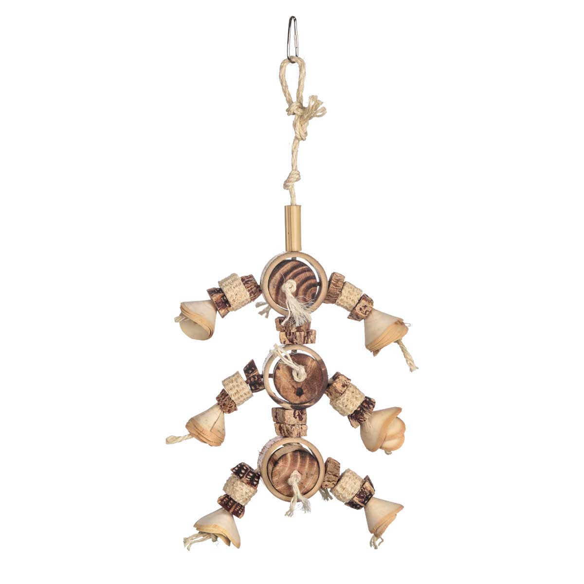 Vogelspielzeug Bissy ist das perfekte Spielzeug für Ihren gefiederten Freund. Mit einer Größe von 45 x 19 cm bietet es ausreichend Platz für Vögel, um zu klettern, zu schwingen und zu spielen. Dieses kreative Spielzeug ist aus hochwertigem Fichtenholz gefertigt und mit zusätzlichen Baumwollseilen ausgestattet, die die Neugier und Aktivität Ihrer Vögel anregen.