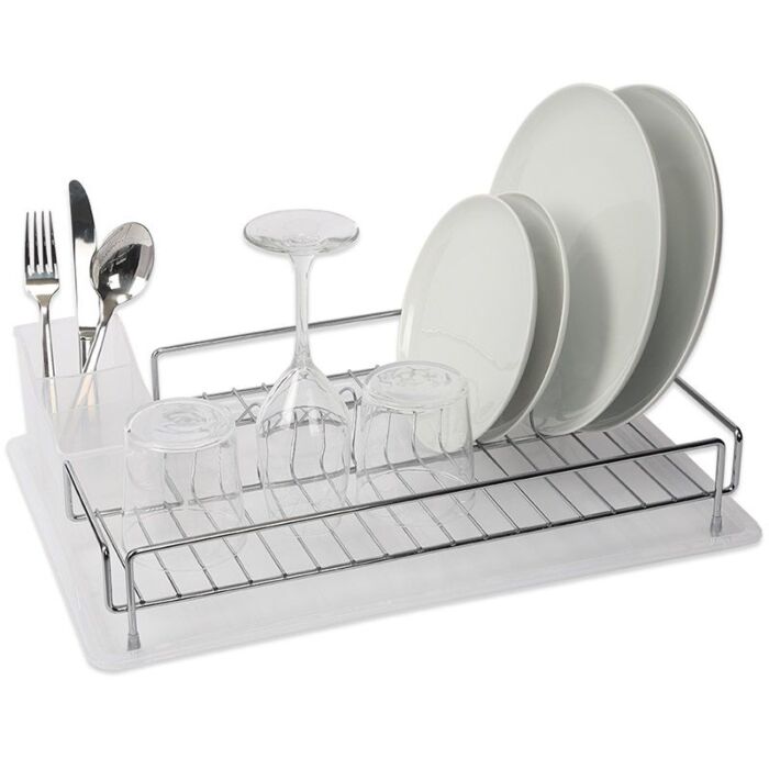 Der Geschirrkorb lässt sich leicht auf der Spüle oder der Arbeitsplatte platzieren und ist ideal für den täglichen Gebrauch. Nach dem Abspülen des Geschirrs können Sie dieses einfach in den Korb stellen, um überschüssiges Wasser abtropfen zu lassen. Die praktische Tropfschale sorgt dafür, dass kein Wasser auf die Arbeitsplatte gelangt.