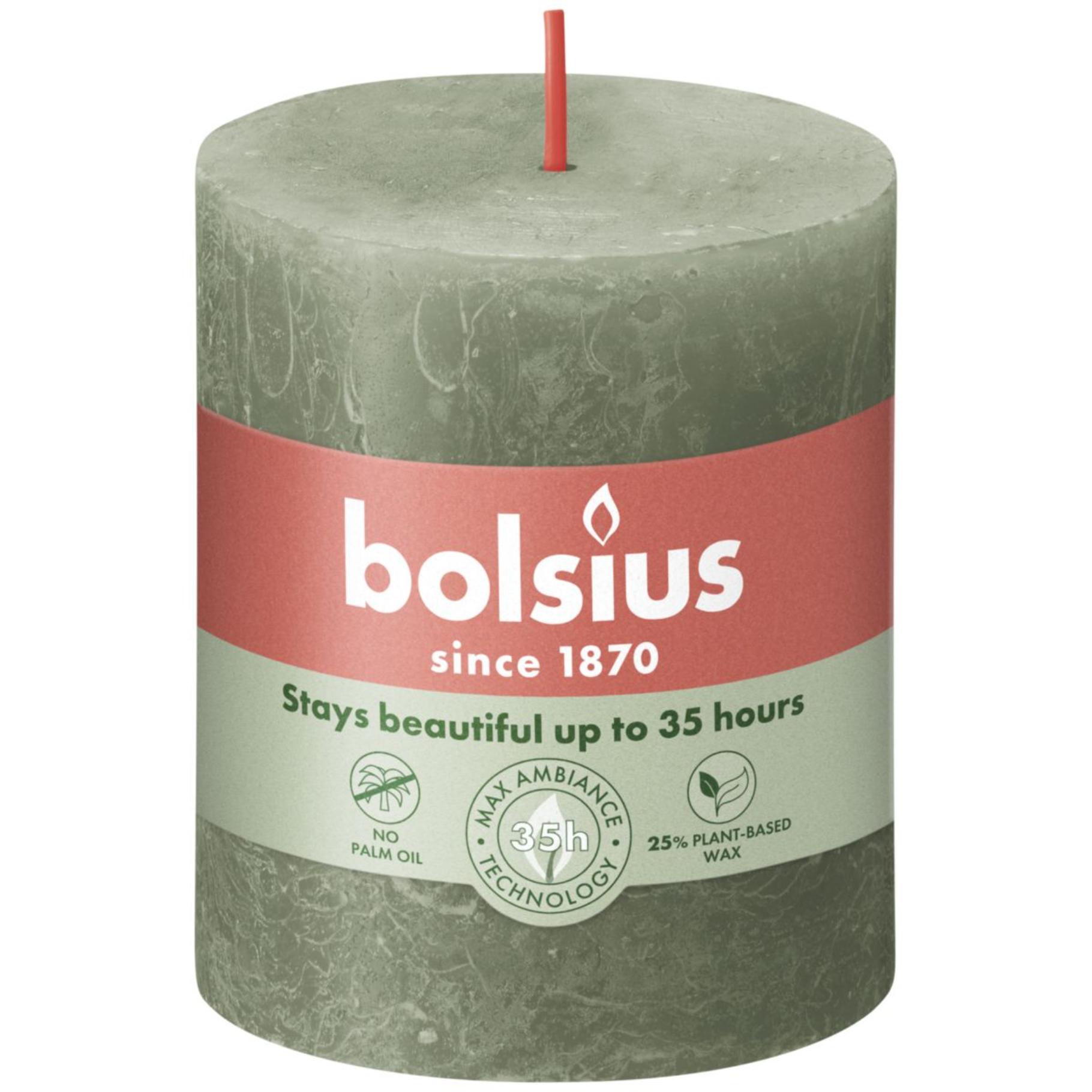 Bolsius | Rustikale Blockkerze | Olivgrün 80x68 mm