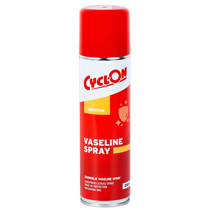 Der Inhalt des Cyclon® Vaseline Sprays beträgt 250 ml und befindet sich in einer handlichen Sprühflasche. Die Formel basiert auf hochwertigem Vaseline, das besonders für seine schützenden Eigenschaften bekannt ist. Die Größe ist ideal für die Nutzung sowohl zu Hause als auch unterwegs.