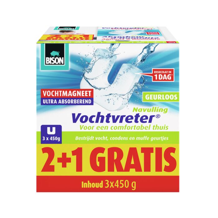 Der Bison Moisture Absorber Moisture Magnet Refill ist die ideale Lösung, um Feuchtigkeit in Ihrem Zuhause effektiv zu reduzieren. Dieser Nachfüllpack enthält 3 Packungen zu je 450 g, die geruchlos sind und leicht in den Bison Moisture Absorber eingeführt werden können.