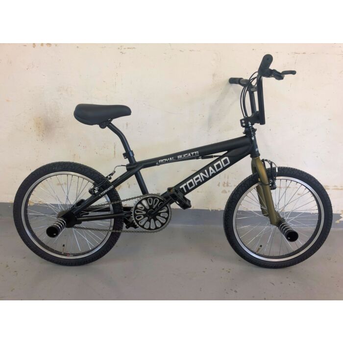 Das Tornado BMX Fahrrad in der Größe 20 Zoll ist ein stilvolles und robustes Modell, das speziell für junge Fahrer entworfen wurde, die sowohl im Freestyle als auch im Alltag Spaß haben wollen. Mit seinem mattschwarzen Finish und den eleganten bronzefarbenen Reifen fügt sich dieses BMX-Fahrrad perfekt in das urbane Umfeld ein und sorgt für einen auffälligen Auftritt.