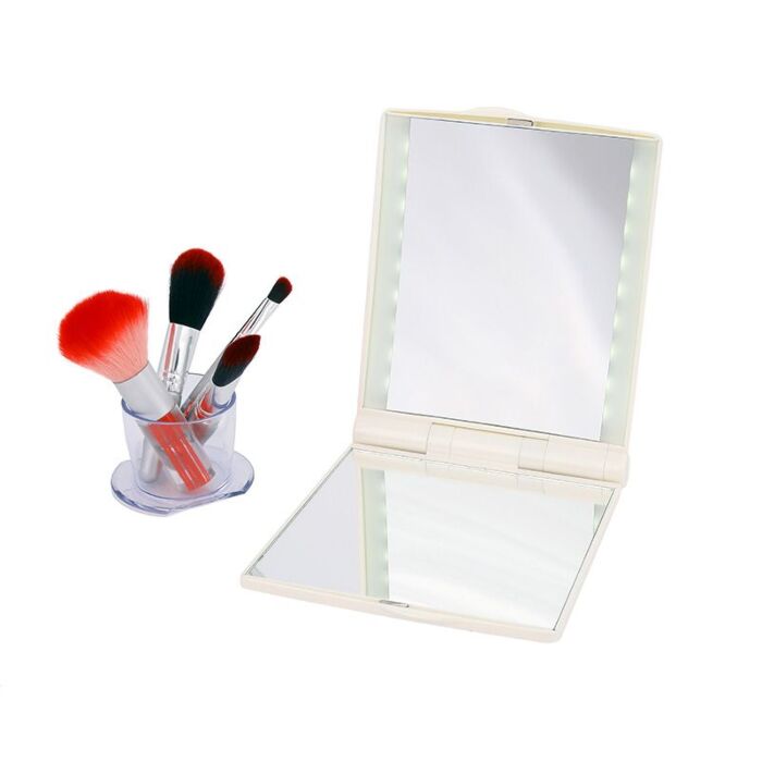 Der Spiegel hat eine kompakte Größe von 15 x 13,5 cm, was ihn perfekt für den Einsatz auf dem Tisch oder im Handgepäck macht. Das Gehäuse ist aus hochwertigen Materialien gefertigt, die sowohl langlebig als auch ästhetisch ansprechend sind.