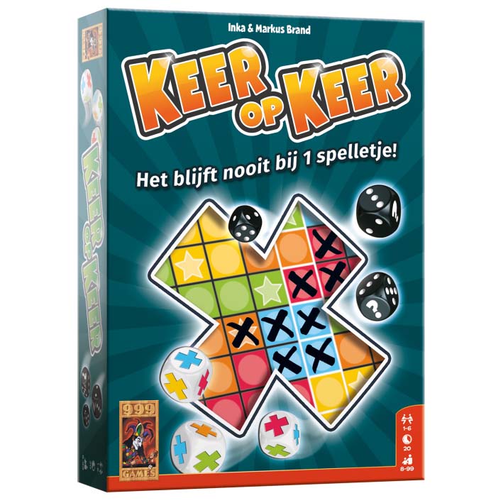 Keer Op Keer - Dobbelspel kann zu Hause, auf Reisen oder bei gemeinsamen Familienveranstaltungen gespielt werden. Es eignet sich perfekt, um die Denkfähigkeiten und die soziale Interaktion der Spieler zu fördern.