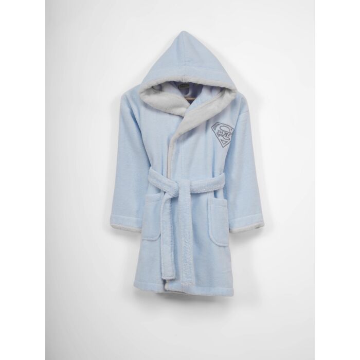 Asir Boy - Hellblauer Kinderbademantel. 100 % BAUMWOLLE 360 gr/m Mikrobaumwolle Zerotwist Kapuzengröße: 6/9